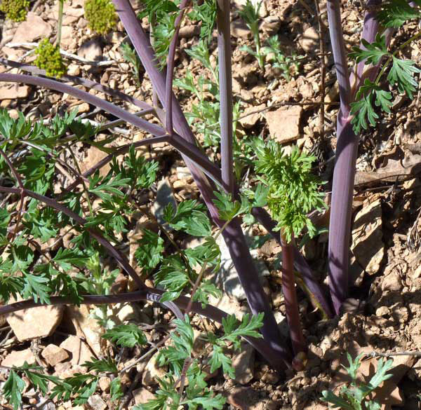 Fernleaf biscuitroot is a long-lived, sturdy, slow growing, tap-rooted, semi-arid perennial herbaceous forb that normally grows up to 1.3 m (51 in) tall. The plant is found growing in open, often rocky slopes,  dry meadows, often on talus, rocky outcrops, riparian habitats, grasslands, mountain meadows, sagebrush,  steppe, desert shrub lands, woodlands,  forests, meadow steppe, mountain meadow vegetation, thickets and valleys to lower subalpine. The plant grows in a variety of soil types, including rocky to fine-textured and acidic to alkaline soils. It is most common in well-drained, dry; rocky soils particularly those on talus slopes. Root is a large, sometimes branching, taproot reaching approximately 30 cm (1 ft.) long and 5 cm (2 in) thick. Stems are ascending and hollow. Herbage is aromatic and glabrous to puberulent or minutely scabrous.