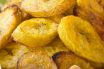 A relative of the banana with very thick peel and much larger in size. The flesh is deeper yellow and may be eaten cooked unripe as one would eat a potato. When the peel turns black it is ripened and is very sweet.