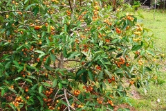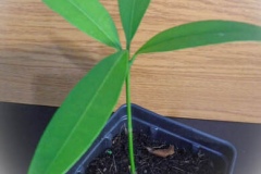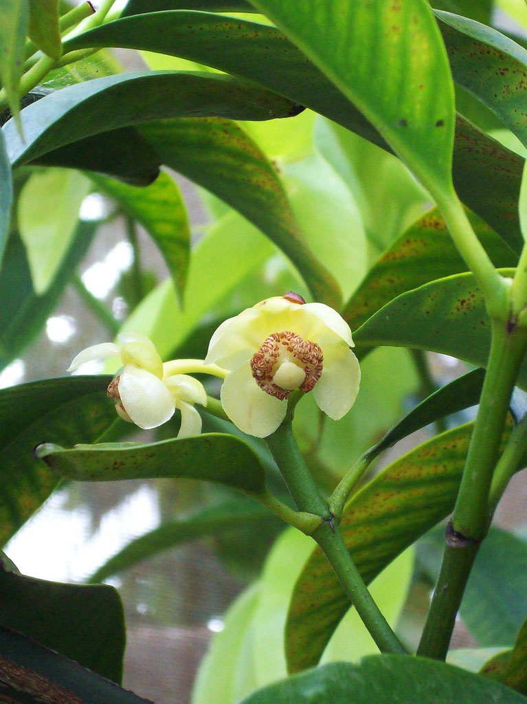 Achacha is an evergreen shrub or small tree that grows about 6–10 m with pyramidal shaped canopy and stem of 40 cm diameter with a yellowish sap. The plant is found growing in sheltered aspects of woodland, often on limestone, at elevations of 150 – 900 meters and wet forests near the coast of Panama. The plant does best in moist, well drained, alluvial soils rich in organic matter. It is intolerant of saline soils and is moderately drought tolerant. Leaves are opposite, large, glossy dark-green, coriaceous, simple, and elliptic to lanceolate 15–28 cm long and 4–8 cm wide, with entire margin and acute to acuminate apex. Juvenile leaves are pinkish- bronze, turning yellowish-green then to dark green.