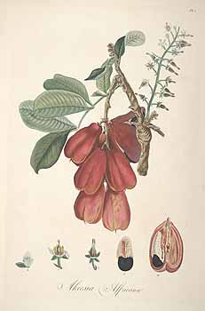 The earliest identified reference to ackee occurs in the Hortus Eastensis, a catalogue prepared by the botanist Arthur Broughton of the “exotic  plants”  growing  in Hinton East’s botanic garden near Gordon Town, Jamaica at the time of East’s  death in 1792.  In that listing, Broughton gave no scientific name and simply called the plant akee. Broughton added, “This plant was brought here in a slave ship from the coast of Africa, and now grows very luxuriant, producing every year large quantities of fruit.”