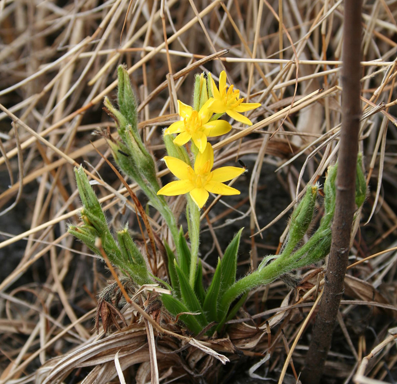 Flower 5-13 bright yellow, star-shaped flowers with 6 tepals.