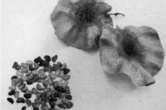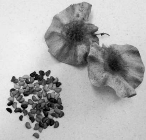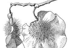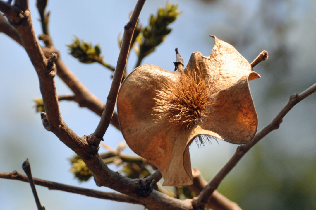 Shapes Distinctive circular pod, covered in long bristles over the seed case