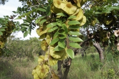 The name “Pterocarpus” comes from the Greek words “ptero,” which means “wing,” and “karpos,” which means “fruit.” This name comes from the unique fruits that many species in the genus Pterocarpus have that have wings. Another name for “Angolensis” is “Angola,” which is a country in southwestern Africa. This name makes it sound like the tree is from Angola or has some connection to that country. People also often grow this plant as a decorative street tree or shade tree because of its many fragrant orange-yellow flowers. People want to cut down this tree because its wood is strong and looks good. Wood from this tree is used for many things, like building furniture, cabinets, floors, boats, veneer, and construction. Other things that it is used for are making singing instruments and carvings.