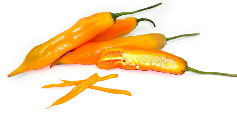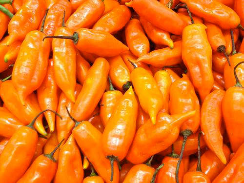 Aji Amarillo (Capsicum baccatum), also known as Aji, Aji Pepper, Aji Amarillo, Locoto, Amarillio Chilli, Wild Baccatum, Peruvian Hot Pepper, Aji Andean, Aji Amarillo Mirasol, Aji Camba, Aji Caballero, Aji Chanca, Aji Chivato, Aji Cochabamba, Aji Cito, Aji Colarado, Aji Cohincho, Aji Aji Indian, Aji Little Finger, Aji Limon etc. belongs to the night shade family Solanaceae. It is used as hot peppers which enhance the flavor of various dishes. As they are also known as yellow chile peppers, it possesses deep orange pendant fruit.