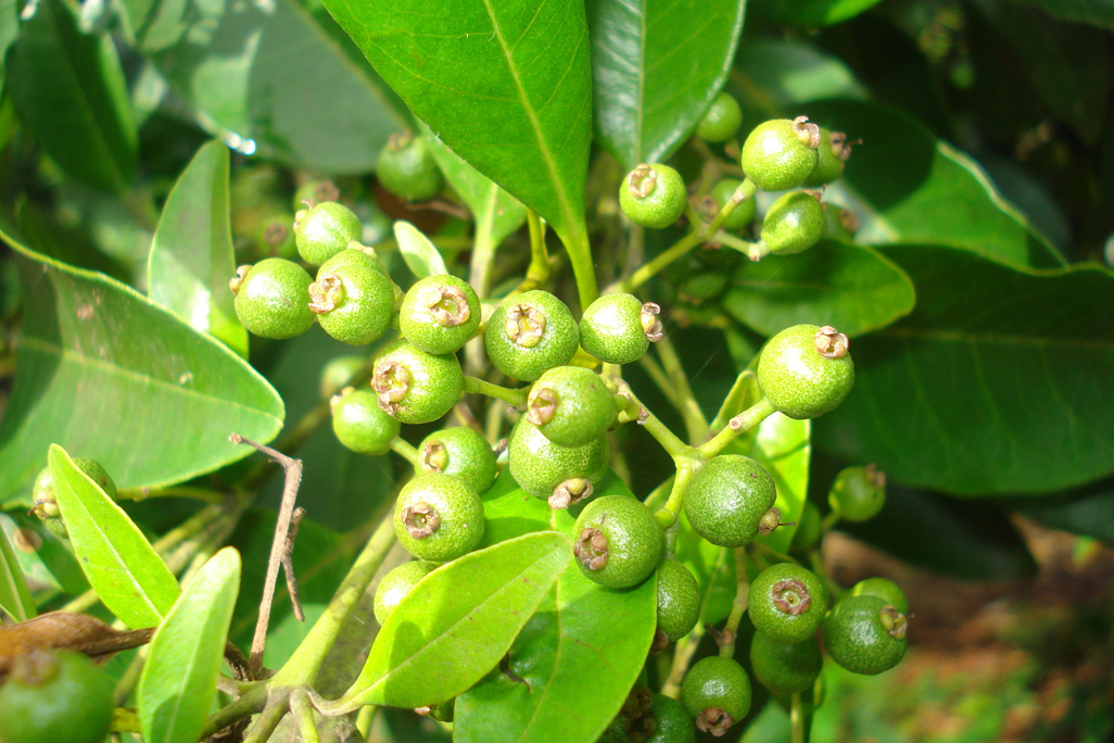 Allspice is a small, evergreen, branched, tree, 6–12 m high with brownish-gay, erects trunk and a bushy, rounded canopy. It grows well in semitropical lowland forests and thrives best in well drained, moist, fertile, loamy calcareous soil. Leaves are opposite, simple, oval-oblong to elliptical, clove smelling 6–16 cm long by 3–6 cm wide, obtuse rounded apex, cuneate base, glabrous, entire, leathery, pellucid-dotted on lower surface with 12–16 pairs of prominent main veins, mid-rib depressed on upper surface, glossy deep green when mature, pale green when juvenile. Normally flowers are bisexual, greenish white, small, 6–10 mm across that appear in summer, and are followed by round, berries.