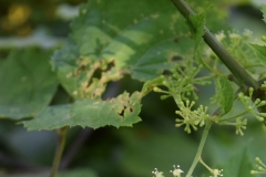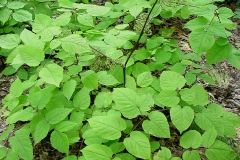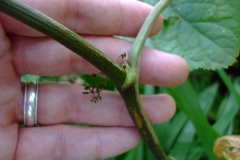 Leaves are few, large compound and divided into three main sections. Each section is pinnately divided into 9 to 21 leaflets which are stalked, ovate, sharply toothed, and quite variable in size and often double toothed. They taper to the pointed tip with heart shaped base. Leaflets are 2 to 6 inches long. Veins on the leaflet are underside and leaflets stalk have fine hair.