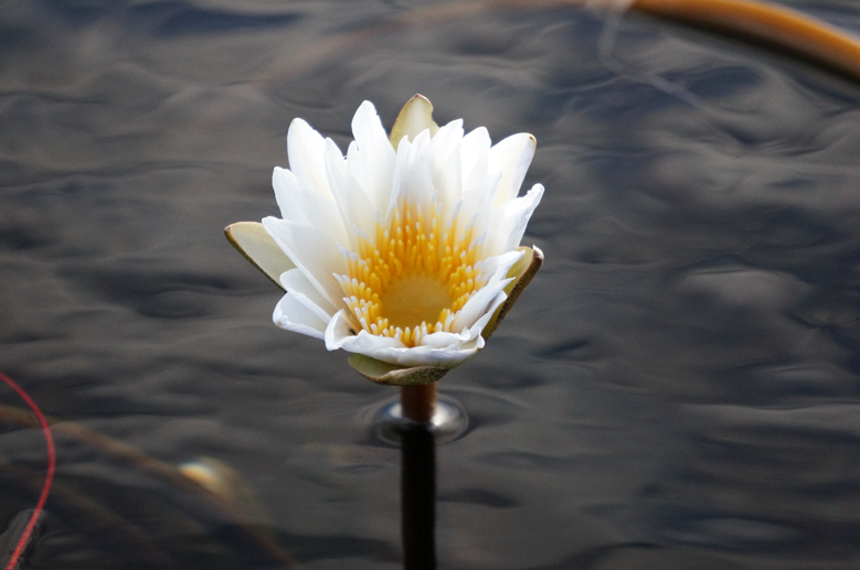 The water lily takes its genus name, Nymphaea, from the Greek numphe, meaning “water nymph” or “virgin”. The Greeks are said to have given the flower this name because of its reputed anti-aphrodisiac qualities. They grow from blackish, large, fleshy perennial rhizomes beneath the soil at the bottom of a water feature and have long, tubular stems that bring oxygen from the waxy green leaves that float on the surface to the underwater parts of the plant.