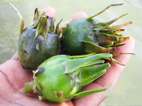 Flowers are large, regular, bowl shaped, 5–20 cm (2–8 in.) wide, white or rose-colored, beautiful and fragrant. Only one flower on single stem that are white, fragrant, 2-6 inches across, and floating on the water. Flowers open in the early morning and close about noon. There are 4 sepals and many rows of white petals, often more than 25, which are 3/4-4 inches long, thick, and pointed at the tip. There are more than 70 stamens. The outer ones are large and petal-like; they become smaller toward the cent. Flowering normally takes place from Jul to August. Fruit is a depressed globular, fleshy body that consists of seeds that are oblong, stipulate.