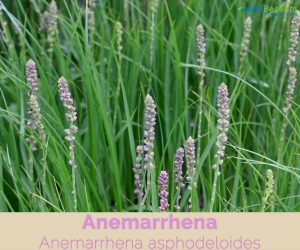 Anemarrhena is a small evergreen, ornamental, perennial, decorative plant that normally grows about half a meter tall. The plant is found growing in mountain woodlands, exposed slopes, hills, scrub, grassy slopes, steppes, sunny and sandy hillsides and also cultivated near sea level. The plant requires a rich moist neutral to acid soil that is rich in organic matter, in a position in partial or dappled shade. Plants are tolerant of strong winds. Rhizomes are large, hard, and round with pale-yellowish color inside and are best for medicinal use. Rhizomes (roots) and the stems of the plant are the medicinal parts of the plant. They are often dried for use in decoctions. Leaves are simple and up to 60 cm long but just 0.15 to 1 cm wide.