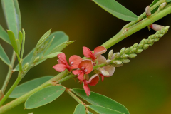 | Flower | Corolla is 4-5 mm long, salmon pink to red colored. Calyx is campanulate, 1 mm long, teeth triangular and 1 mm long. Standard petal is ovate to orbicular, 4 mm long and 3 mm wide, brown-hairy on the back, wings 3 mm long and 1 mm wide, glabrous |