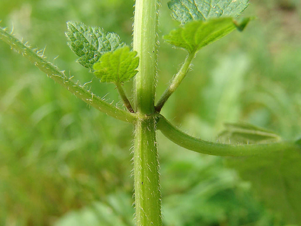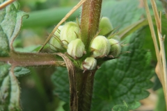 Lamium album is a flowering plant commonly known as white dead nettle or white nettle belonging to family Lamiaceae. It is inherent throughout Asia and Europe found in various habitats from open grassland to woodland generally on moist and fertile soils. It is a perennial growing flowering herb with stems growing to the height of 2 feet. Leaves are jagged, oval with long stalks and are arranged in pairs opposite to each other. Leaves have triangular smoothed base growing 3 to 8 cm long and 2 to 5 cm wide. Leaves are softly bristled with intended border and petiole measuring 5 cm long.