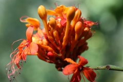 Saraca asoca is an evergreen herb measuring 7-10 cm high which occurs to the altitude of 750 meters. Leaves are parpinnate, oblong, narrowly lanceolate and completely united. Bark is almost black or dark brown with warty surface. Stem bark is rough, uneven due to rounded or projecting lenticles. Leaves are narrowly lanceolate. Flowers are deciduous, corymbose, yellowish orange and apetalous. The tree starts flowering from February to April. Fruit is a pod which is flat, oblong and apiculate. Seeds are compressed and ellipsoid to oblong.