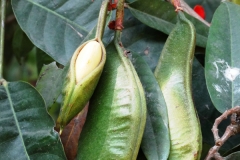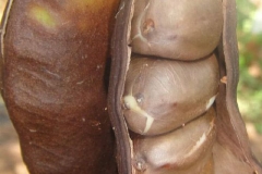 Fruit is a legume about 12.5-22.5 cm long and 5 cm wide which tapers to both ends, compressed, glabrous, rigidly leathery and veiny. It consists of 3.7-4.3 cm seeds which are ovoid and slightly compressed.