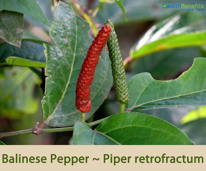 Piper retrofractum commonly known as Balinese long pepper or Javanese long pepper is a flowering vine in the Piperaceae (Pepper family). The plant occurs wild in Indonesia, Malaysia, Philippines, Thailand and Vietnam. It is also found in the Ryuku Islands and Yunnan, and is cultivated in Guangdong, China and Kampuchea. Long pepper is cultivated only to a limited extent on Java, Bali and some neighboring islands. Some of the well-known common names of the plant are Balinese Pepper, Jaborandi Pepper, Java Pepper, Long Pepper, Java Long Pepper, Javanese Long Pepper, Javanese long pepper bush, Thai Long pepper and Bengal pepper.