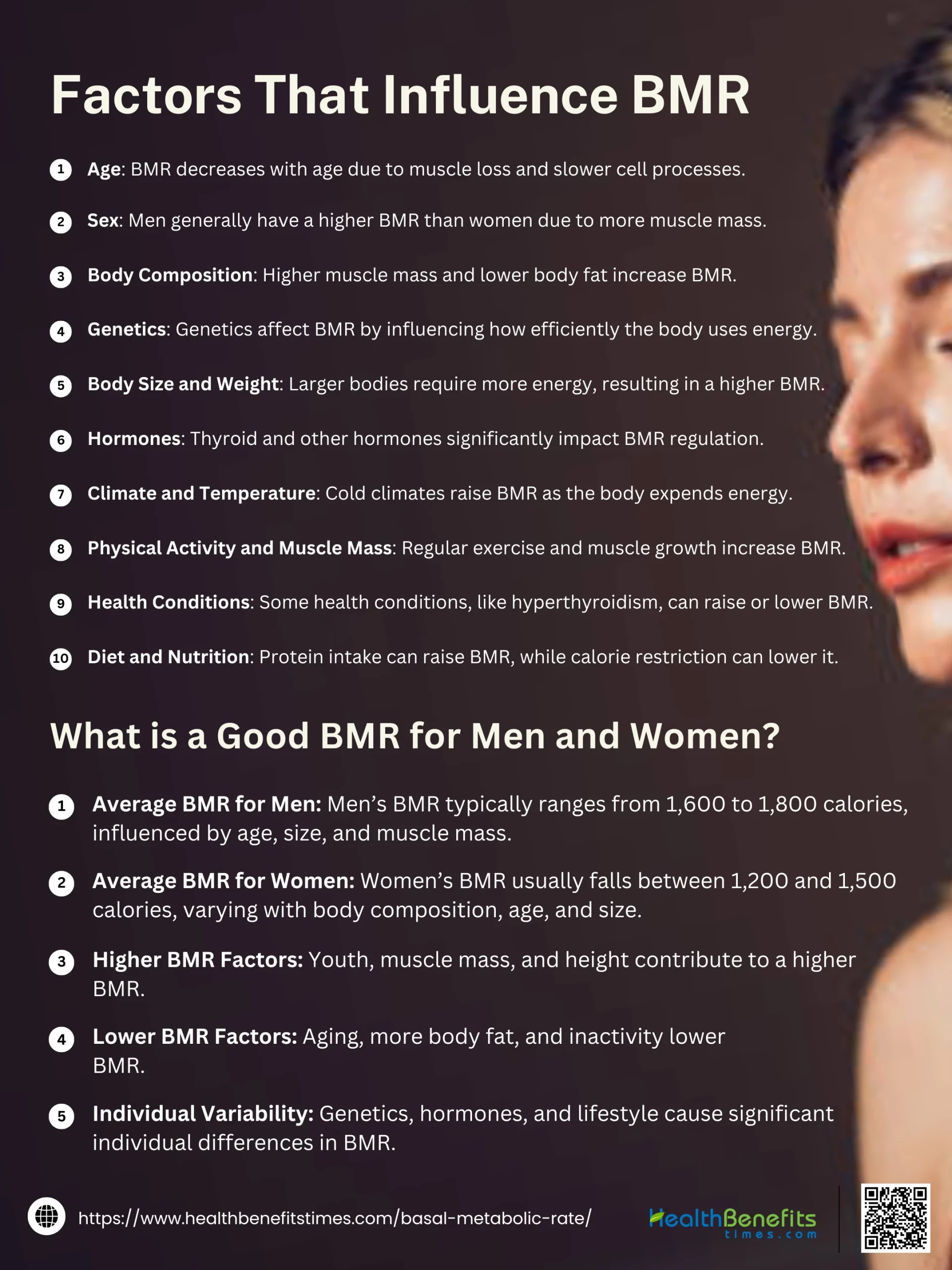Several factors influence your Basal Metabolic Rate (BMR), affecting how many calories your body needs at rest. While some factors are beyond your control, others can be modified to help adjust your energy expenditure. Understanding these influences can provide insight into how your body uses energy and guide your approach to diet and fitness.