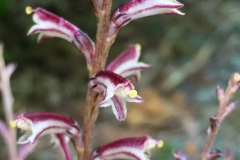 Beech drops grows to the height of 5 inches to 18 inches. Branches are skinny and tubular with small scale like leaves which are flat pressed against stem. Flowers are tiny occurring singly or in spikes. Flowers are tubular and forms two lip like projections and produce nectar to attract winged pollinators. Flowers bloom from August to October and by the end of November, the plant turns dark brown and brittle. It is used for treating diarrhea, mouth sores, dysentery and externally on cold sores.