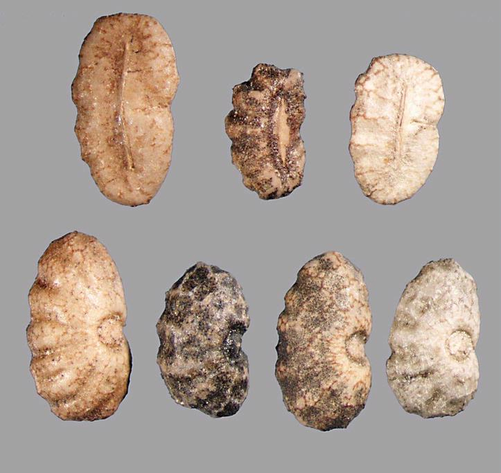 Shapes Small, round capsules measuring approximately 1 centimeter in diameter and contain black seeds