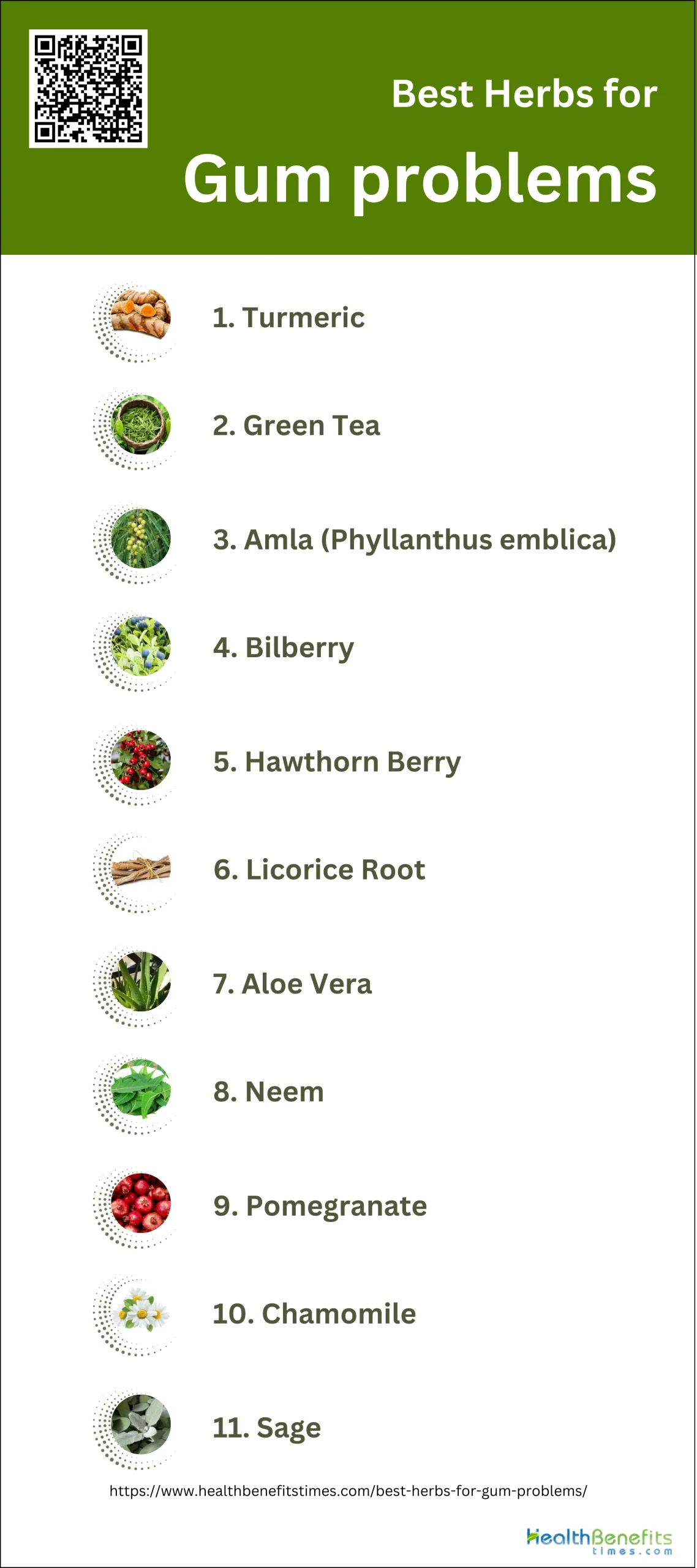 Herbs such as green tea, turmeric, neem, and sage can help prevent gum problems by reducing plaque buildup, lowering inflammation, and maintaining oral hygiene. Incorporating these herbs into your daily oral care routine, such as using herbal mouthwashes or toothpastes, may help prevent the onset of gum diseases.