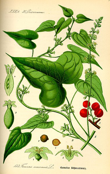 Black Bryony is also used for irritation of the intestine mucous membrane and as an emetic.