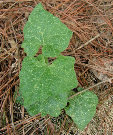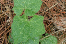 Leaves are heart-shaped pointed 10cm long by 8cm wide (4in by 3in), with a petiole up to 5cm (2in) long, are smooth with a shiny appearance as if they have been varnished, turning dark purple or bright yellow, the stems die down in the winter.