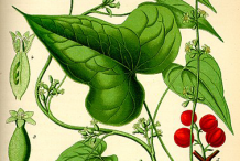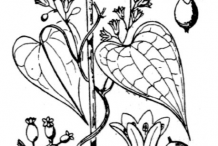Black Bryony (Ladies Seal) is a climbing herbaceous plant that grows about 2–4m (6.5-13ft) tall. The plant is normally found growing in forest understory, from the sea to the mountains, usually in dense woods, but it can also be found in meadows and hedges. It prefers sandy, loamy and clay soils, requires well-drained soil and can grow in heavy clay soil. The plant also prefers acid, neutral and basic (alkaline) soils. The plant has a large, fleshy root that is almost cylindrical with a diameter of 2 to 3 cm. The root is 6 to 8 cm long and has scattered, thin root fibers. Externally, the root is blackish-brown. Internally, it is whitish and produces a slimy paste when it is peeled. Stem is very long, slender, angular or round, branched. Weak stems twins clockwise around anything within reach, climbing or creeping amongst trees, bushes and undergrowth. The stem dies back in winter but the root is perennial.