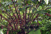 Black Cardamom is a small perennial herb that grows about 1–2 m tall. The plant inhabits in cool forest areas near mountain streams and damp forest floors. It is found on slopes of hills where there is plenty of well-drained water available, preferably in the north slopes of under the shade of trees. It does best in deep, well-drained soils with loamy texture and rich in organic matter. The plant has dull red colored rhizomes and ligule that are membranous, apex rounded, emarginate; petiole absent or nearly so on proximal leaves.