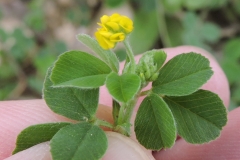 English: black medick, hop clover, black trefoil, trefoil, yellow trefoil;