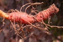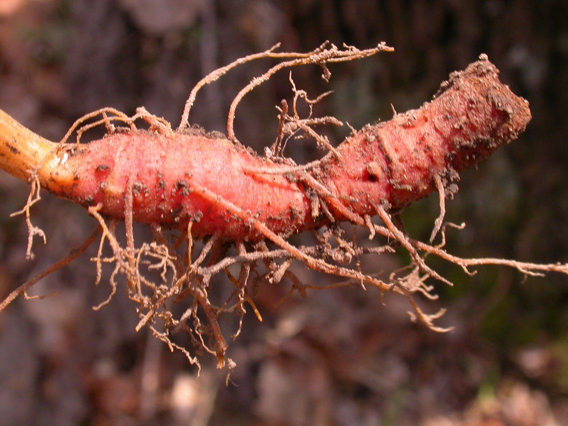 The name (species) canadensis mention its Canadian origin. The North American people used root to treat various health ailments.  The juice is used as skin paint, dye objects and repels insects. In the 19th century, the root moved to European trade. It was used in tincture or powder form in limited dosages to produce sweat and as an expectorant to treat chronic bronchitis. In North America, the root is considered officinal.