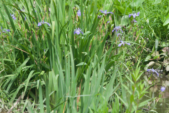 Blue Irish is an herbaceous perennial plant that grows about 10–80 centimeters high. It is found growing in marshes, swamps, wet meadows, along shorelines, forested wetlands, sedge meadows, marshes, and along stream banks and shores. The plant prefers sandy or loam-peat like soils. The plant has fibrous roots. Rootlets are long, slender and simple. Stem is straight, not much above the ground and usually possess basal leaves which are over 1 cm in width.