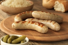 A German sausage which is made from pork and ground veal, usually flavored with salt, paprika and white pepper. This sausage is made with large proportion of veal than pork, unlike bratwurst and is flavored with chives and also warm spice flavor of cloves (ground). It might also add other herbs such as parsley and chives. The typical ingredients include white pepper, nutmeg (or mace), parsley and lemon flavor. In Germany, Bockwurst is smoked as well. Basically, Bockwurst is consumed with bock beer and is served with mustard. Usually a natural casing sausage is cooked by simmering or also grilled. It is better to avoid boiling as the casing may split and look unappetizing and might also lose its flavor to cooking water. Bockwurst resembles Bavarian Weisswurst in taste as well as color.