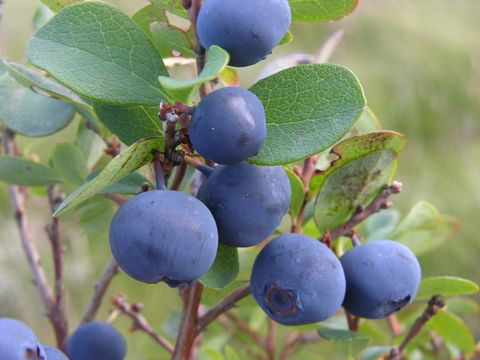 Vaccinium uliginosum with many common names including Bog bilberry, Bog blueberry, Moorberry, Western-huckleberry, Alpine Blueberry, Northern Bilberry, Bog whortleberry and Ground Hurts is a low, highly branched, deciduous shrub of the heather family (Ericaceae) and Vaccinium genus. The plant is closely related to the blueberry, cranberry, and huckleberry. The plant is native to cool temperate regions of the Northern Hemisphere, at low altitudes in the Arctic, and at high altitudes south to the Pyrenees, the Alps, and the Caucasus in Europe, the mountains of Mongolia, northern China, the Korean Peninsula and central Japan in Asia, and the Sierra Nevada in California and the Rocky Mountains in Utah in North America. Vaccinium is the Latin word for “blueberry” or “whortleberry” and Uliginosum means “full of moisture” or “marshy.” Anthocyanins are responsible for the color of bog bilberries with over 15 different anthocyanins identified from bog bilberries grown in the west coast of Norway
