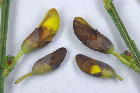 Broom scientifically known as Cytisus scoparius is a multi-stemmed, deciduous/evergreen shrub that grows 6 to 12 feet (2-4 m) tall. Apart from broom it is also known as Scotch Broom, Broomtops, Common Broom, European Broom, Irish Broom, Genista, Besom, Scoparium, Irish Tops, Basam, Bizzom, Browme, Brum and Breeam. The plant is native to central and southern Europe from the British Isles east to southern Scandinavia, south to Iberia, and east to Belarus and Romania. It is a species in the pea family Fabaceae. The plant was introduced as an ornamental shrub and for erosion control use. In medieval Europe, the typical housewife used the twigs and branches of the scotch broom as domestic tool for sweeping the floors. A common belief in the middle Ages was that the scotch broom could repel witches; however, using the scotch broom while it was in full bloom was believed to invite bad luck on the house.