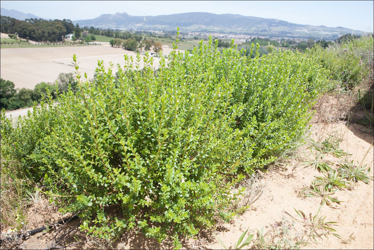 Buchu is an evergreen, multi-stemmed, aromatic, perennial re-sprouting woody shrub that normally grows about 2 m (6 ft. 7 in) tall. The plant is particularly adapted to dry conditions and can be found on sunny hillsides, on damp lower and middle slopes as well as valley. The herb is grown from cuttings in late summer and requires a lime-free, moisture-retentive but well-drained soil in a sunny position. Some plant species are well adapted to grow at either more acidic or more alkaline pH ranges. Branches are many, stiff and angular with smooth, red-brown to violet-brown barks. Twigs are covered with immersed oil-glands.