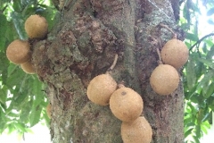 Burahol is a large and erect evergreen tree which measures 25 meters tall with trunk having 40 cm in diameter with dark grey to brown to black and bark is covered with various thick tubercles. Leaves are elliptic oblong to ovate-lanceolate about 12–27 cm × 5–9 cm having distinct mid rib. Flowers are unisexual and green turning whitish and fascicled on tubercles. Male flowers are ramiflorous on older branches measuring 1 cm in diameter having 3 ovate deltoid and obtuse sepals and 7-8 mm long imbricate petals in two whorls of three. Fruits are brownish, sub globose to obovoid, juicy about 5-6 cm in diameter with yellow pulp enclosed with 4 to 6 ellipsoid seeds about 3-3.5 cm long.