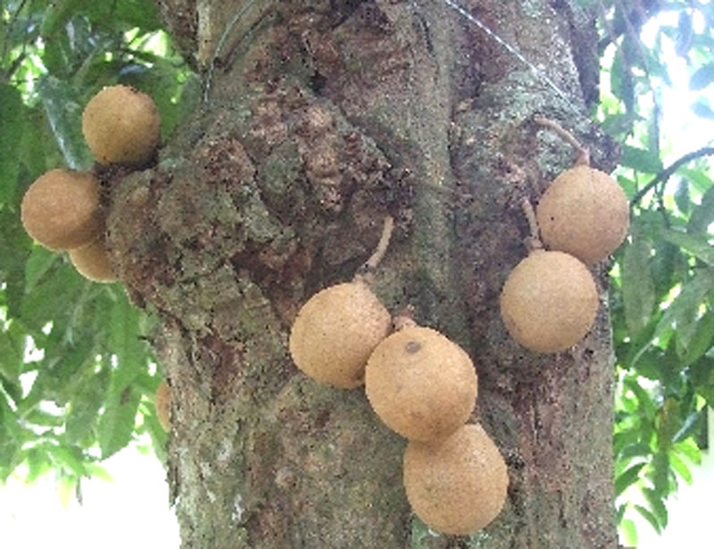 Burahol is a large and erect evergreen tree which measures 25 meters tall with trunk having 40 cm in diameter with dark grey to brown to black and bark is covered with various thick tubercles. Leaves are elliptic oblong to ovate-lanceolate about 12–27 cm × 5–9 cm having distinct mid rib. Flowers are unisexual and green turning whitish and fascicled on tubercles. Male flowers are ramiflorous on older branches measuring 1 cm in diameter having 3 ovate deltoid and obtuse sepals and 7-8 mm long imbricate petals in two whorls of three. Fruits are brownish, sub globose to obovoid, juicy about 5-6 cm in diameter with yellow pulp enclosed with 4 to 6 ellipsoid seeds about 3-3.5 cm long.