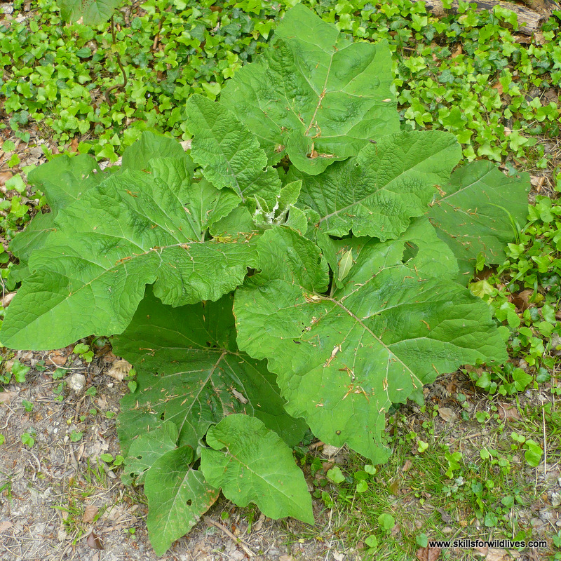 | Leaf | Broadly heart-shaped, 6-18 inches long, 4-14 inches wide, with hollow petioles and wavy and toothed margins. The undersides of these leaves are loosely hairy and light green. Stem leaves are much smaller, alternate, and egg-shaped. |