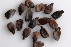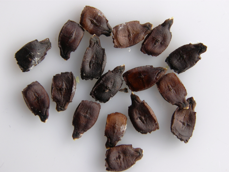 Seed Edible and soft when young, transforming into hard, black, and inedible, arrow-shaped kernels as they mature. Seeds are 12 mm long, 7 mm wide and 3 mm thick and are flat and matt black