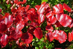 In summer, the shining foliage is dark green and very smooth, and in autumn the leaves commonly turn brilliant colors, ranging from yellow and orange to more commonly red, pink, purple, and bronze. However, since the color often develops very late in autumn, the leaves may be killed by a hard frost before full color can develop.
