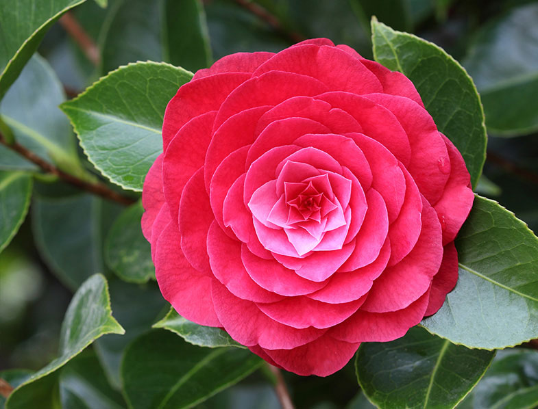Camellia scientifically known as Camellia japonica are flowering small trees or shrubs from the family Theaceae, the tea family. That’s right your iced tea comes from the Camellia plant. The plant is native to Eastern and Southern Asia, most notably China (Shandung), Taiwan, Japan (except Hokkaido), Korea, India and Indonesia, it has become a southern gardening favorite. Japanese Camellia is widely cultivated, especially in south Alabama. It is the state flower of Alabama. Some of the popular common names of the plant are Camellia, Common Camellia, Japanese Camellia, False flax, Gold of pleasure, Kamelia jepang, Mawar musim dingin, Rose of winter, Shancha, Siberian oil seed, Trahoa nhat, Tsitsmati, Camellia Albino Botti, Camellia Don Pedro, Camellia Eugene De Massina, Camellia Princess Mary and Donckelaer’s Japanese Camellia.