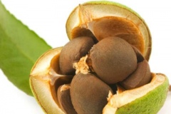 Shapes Globe-shaped capsule with three compartments (locules), each with one or two large brown seeds