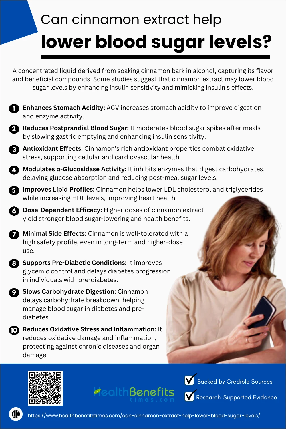 - Some studies suggest that cinnamon extract may lower blood sugar levels by enhancing insulin sensitivity and mimicking insulin’s effects.