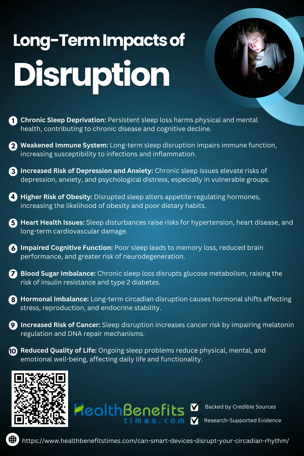 Disrupting your circadian rhythm over time can lead to serious health issues. From sleep disorders to chronic diseases, the long-term effects impact your body, mood, and overall quality of life.