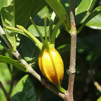 • An edible yellow dye is obtained from the fruit and is used for coloring food in China, Japan and Korea.