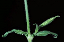 Most of the plant is herbaceous annuals or perennials. Leaves are rarely whorled and opposite. Blades are petiolate, entire and stipulate. Flowers are hermaphrodite, terminal blooming singly or in branched or forked in cymes. Flowers are regular with five sepals and five white to pink to purple petals. Petals are fringed or deeply cleft at the end. Stems are woody at the base but have herbaceous branches. Leaves are slender, glaucous grayish green to blue-green measuring 15 centimeters long.