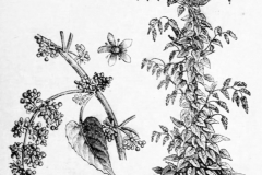 Hablitzia flowers are individually quite small, a lighter green than the foliage, perhaps greenish-yellow, and like little five-pointed stars, a fact that is reflected in the Norwegian name, Stjernemelde, which means Star-chenopod. They are borne profusely in a racemose, paniculate and/or thyrsoid arrangement. The flowers appear from late May through July. The flowers have a noteworthy quality, and that is their scent. Individually it isn’t particularly pronounced. Even when flowers abound, you probably wouldn’t notice it from any great distance. But if you draw close to a particularly floriferous Hablitzia, you might notice the air filled with scent almost exactly like crushed Coriander (Cilantro) leaf – rather unpleasant.