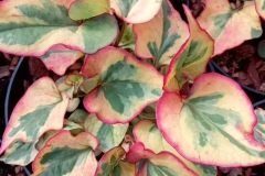 Leaves are heart shaped up to 75 mm long and almost as wide. The leaves are comprised of a mixture of colors from green through yellow to red, the brighter colors being more prominent when grown in full sunlight. The leaves are opposite along thin erect stems which arise from slender rhizomes. Foliage is aromatic when bruised.
