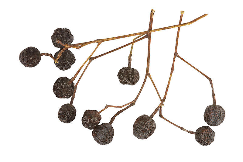 Fertile flowers are followed by round, ellipsoid berries about 1.5 centimeters long, smooth, shining, but held together in clusters; with each berry containing 1-6 seeds and remain on the tree after the leaves fall. Fruits are initially green turning to yellowish at maturity, hanging on the tree all winter, and gradually becoming wrinkled and almost white. Seed is solitary in each cell, pointed smooth and brown. They are oblongoid, 3.5 mm long and 1.6 mm wide surrounded by pulp.