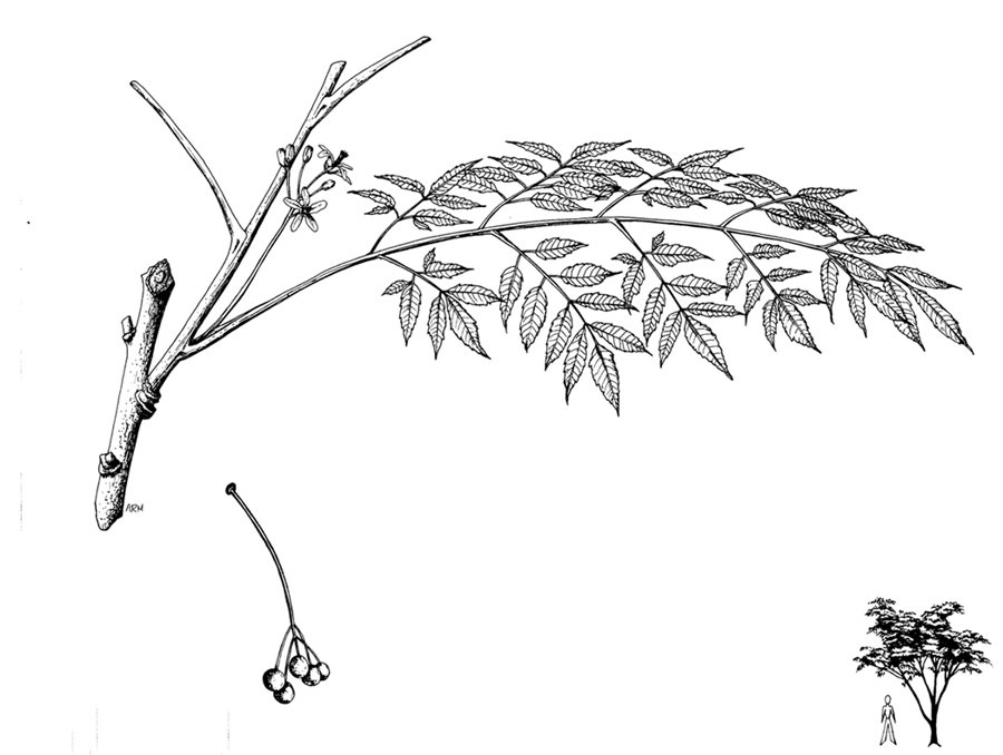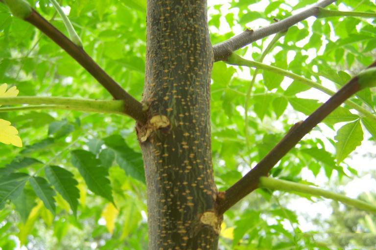 | Leaf | Leaves are alternate, concentrated near the tips of twigs, petiolate, and twice or three-times pinnately compound. Leaflets are oval to elliptic in outline, glabrous or sparsely pubescent on the upper surface, and with serrate margins |