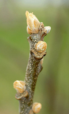 | Branch | Stout, with purplish bark dotted with buff-colored lenticels |