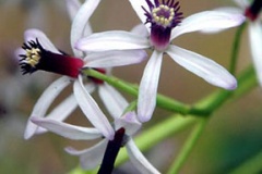 | Flower | Flowers are produced in open panicles from the axils of the leaves. Sepals are green, 1.5-2 mm long. Petals are pinkish lavender, ligulate, 1-1.3 cm long. Stamens are united into a cylindrical, dark purple tube, 6-8 mm long, and cut at the apex into 15-25 slender teeth. Each flower has ten anthers. Flowers are fragrant. |